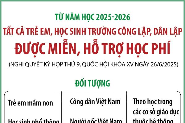 Từ năm học 2025-2026: Tất cả trẻ em, học sinh trường công lập, dân lập được miễn, hỗ trợ học phí