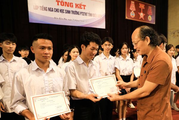 Sáng 23/5, Sở Giáo dục và đào tạo tỉnh Điện Biên phối hợp với Trường Đại học Công nghệ và Quản lý Hữu nghị tổ chức Tổng kết khóa học tiếngNga và trao giấy chứng nhận cho 40 em học sinh Trường Phổ thông Dân tộc nội trú tỉnh Điện Biên tham gia khóa học.