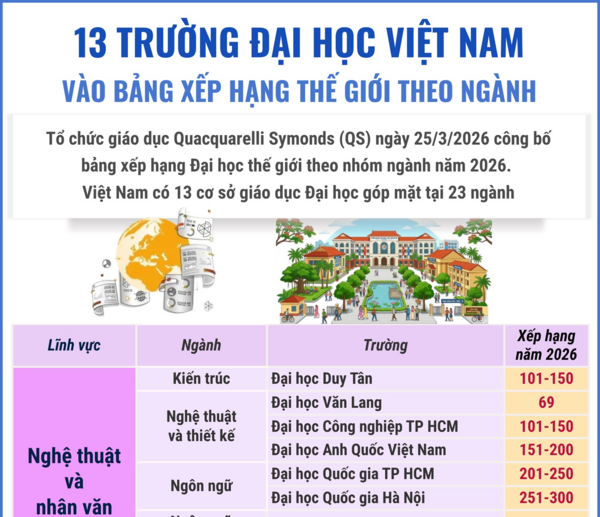 • Việt Nam có 13 trường đại học được xếp hạng thế giới theo ngành học