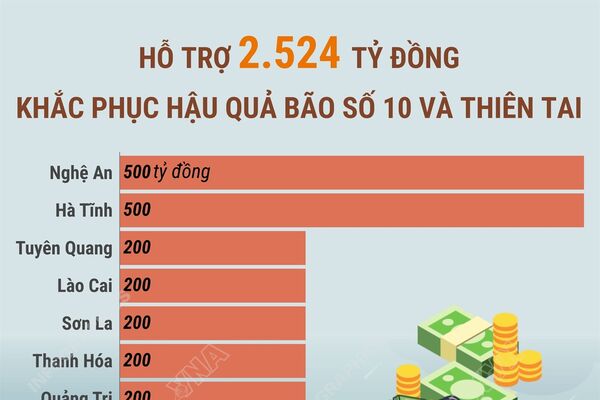 Hỗ trợ 2.524 tỷ đồng khắc phục hậu quả bão số 10 và thiên tai