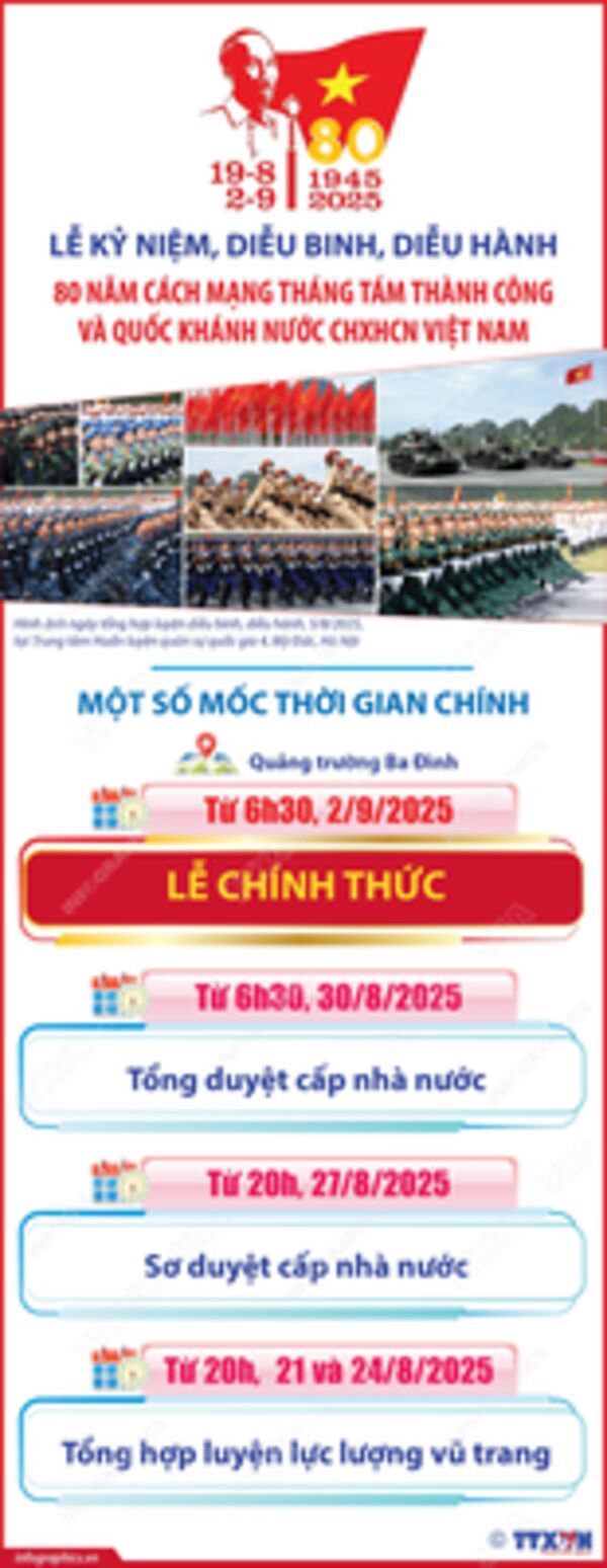 Lễ kỷ niệm, diễu binh, diễu hành 80 năm Cách mạng Tháng Tám thành công (19/8/1945 - 19/8/2025) và Quốc khánh nước CHXHCN Việt Nam (2/9/1945 - 2/9/2025)