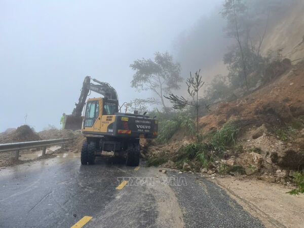 20/06/2025 11:45’ Đại diện Công ty cổ phần quản lý và xây dựng cầu đường 3 Lai Châu đang cho một máy xúc và 2 xe ben khắc phục sạt lở; dự kiến, đến khoảng 12 giờ ngày 20/6 sẽ thông tuyến Quốc lộ 4D hướng Lai Châu đi Sa Pa và ngược lại.