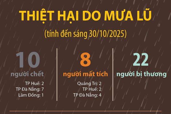 • Thiệt hại do mưa lũ tính đến sáng 30/10/2025