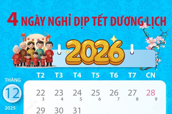 • 4 ngày nghỉ dịp Tết Dương lịch 2026