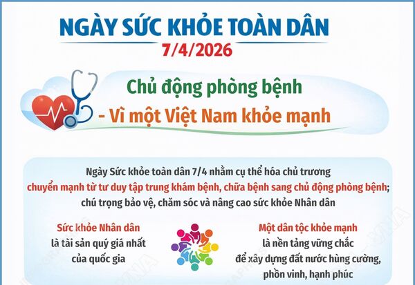 • Ngày Sức khỏe toàn dân 7/4/2026: Chủ động phòng bệnh - Vì một Việt Nam khỏe mạnh