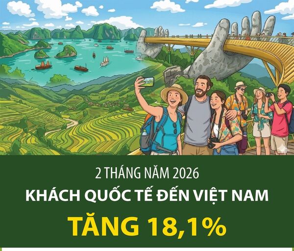 • 2 tháng năm 2026, khách quốc tế đến Việt Nam tăng 18,1%