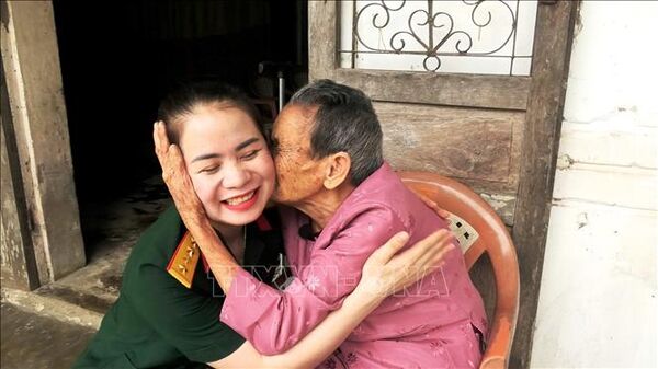 Những ngày cuối tháng 7, khi cả nước hướng đến các hoạt động đền ơn đáp nghĩa, công tác thương binh - liệt sỹ, trong căn hộ nhỏ gần biển Nha Trang, mẹ Lê Thị Minh Thủy được các bạn đoàn viên, thanh niên đến nhà thăm hỏi ân cần. -