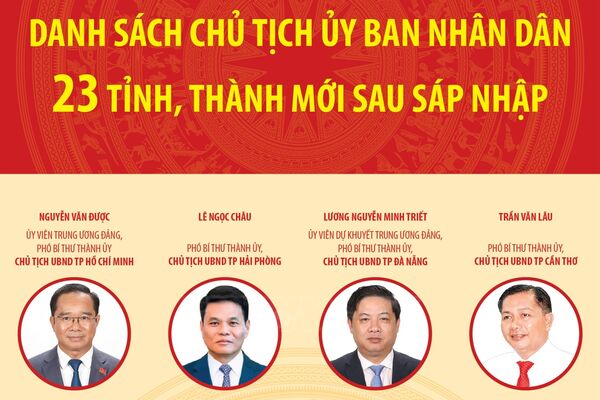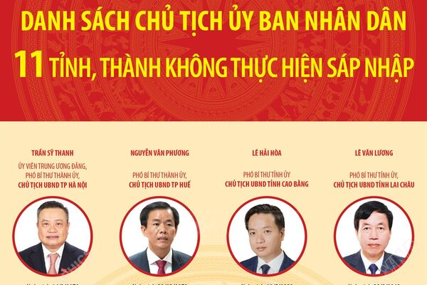 30/06/2025 11:36’ TTXVN trân trọng giới thiệu danh sách Chủ tịch Ủy ban nhân dân 11 tỉnh, thành không thực hiện sáp nhập.