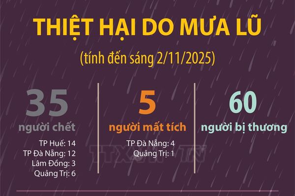 • Thiệt hại do mưa lũ (tính đến sáng 2/11/2025)