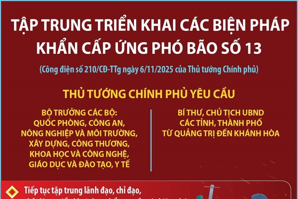 • Thủ tướng yêu cầu tập trung triển khai các biện pháp khẩn cấp ứng phó bão số 13 (Kalmaegi)