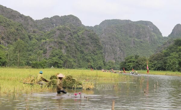 09/06/2025 11:44’ Cánh đồng vào vụ gặt trở nên rộn ràng với sắc vàng và hương thơm của lúa chín cùng âm thanh lao động; đây là khoảng thời gian Tam Cốc đẹp và sôi động nhất trong năm, mang đến cho du khách trải nghiệm đậm chất làng quê Bắc Bộ.