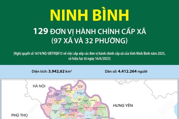 22/06/2025 11:19’ Sau khi sắp xếp, tỉnh Ninh Bình có 129 đơn vị hành chính cấp xã gồm 97 xã và 32 phường.