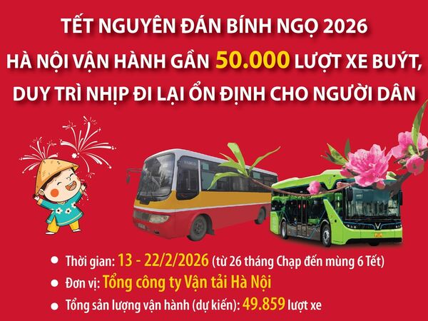 • Tết Bính Ngọ 2026: Hà Nội vận hành gần 50.000 lượt xe buýt, duy trì nhịp đi lại ổn định cho người dân