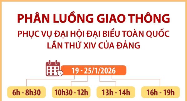 • Thông tin chi tiết về phân luồng giao thông trong những ngày diễn ra Đại hội Đảng XIV từ 19 đến 25/1/2026
