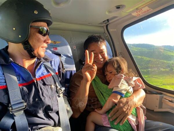 Trực thăng Quân đội bay cứu nạn thành công 8 người dân bị cô lập do mưa lũ tại Sơn La