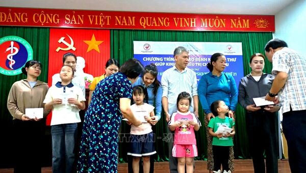23/08/2025 19:42’ Những suất quà ý nghĩa này sẽ góp phần chia sẻ khó khăn với các gia đình có con em mắc ung thư, giúp đỡ phần nào chi phí điều trị bệnh, động viên tinh thần và tiếp thêm nghị lực giúp bệnh nhi, gia đình vượt qua hoàn cảnh.