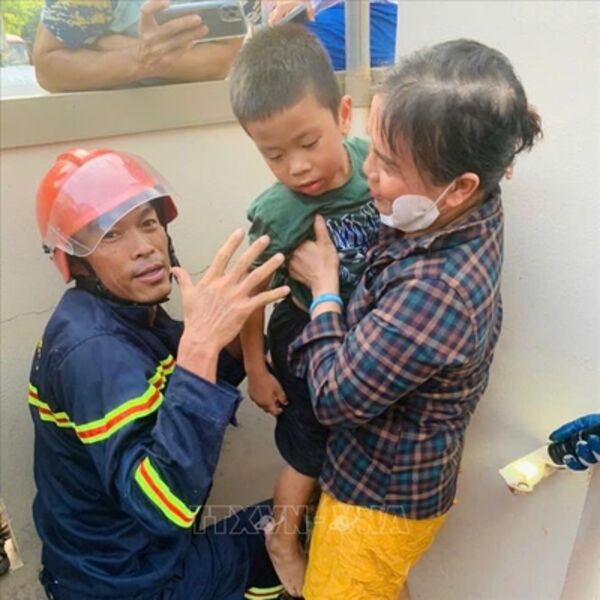 08/07/2025 17:12’ Cháu T. T. (5 tuổi), quê thành phố Huế, trong lúc chơi tại nhà cậu ruột ở đường Phạm Văn Đồng, khóm Trung Chín, xã Lao Bảo, tỉnh Quảng Trị thì không may bị kẹt chân vào ống thoát nước dưới nền sân.
