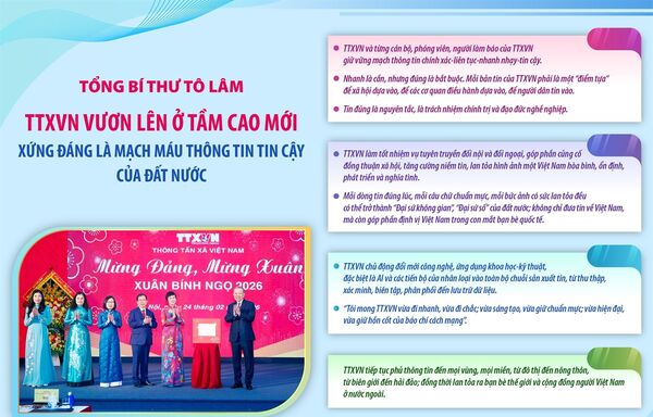 • Tổng Bí thư Tô Lâm: TTXVN vươn lên ở tầm cao mới, xứng đáng là mạch máu thông tin tin cậy của đất nước