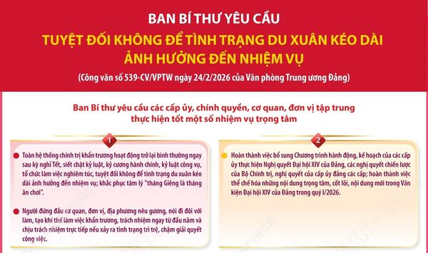 • Ban Bí thư yêu cầu: Tuyệt đối không để tình trạng du Xuân kéo dài ảnh hưởng đến nhiệm vụ