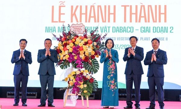 Phó Chủ tịch Quốc hội Nguyễn Thị Thanh, Thứ trưởng Bộ Nông nghiệp và Môi trường Phùng Đức Tiến dự lễ khánh thành Nhà máy dầu thực vật giai đoạn 2 với công suất 1.000 tấn/ngày của Tập đoàn Dabaco Việt Nam. -