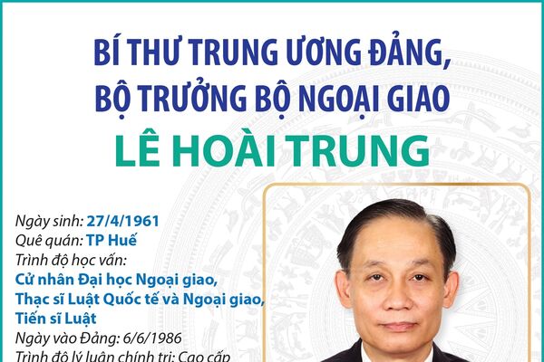 Kỳ họp thứ 10 Quốc hội khóa XV đã biểu quyết thông qua Nghị quyết phê chuẩn đề nghị của Thủ tướng Chính phủ về việc bổ nhiệm đồng chí Lê Hoài Trung, Bí thư Trung ương Đảng khóa XIII, Quyền Bộ trưởng Bộ Ngoại giao giữ chức Bộ trưởng Bộ Ngoại giao nhiệm kỳ 2021-2026. -