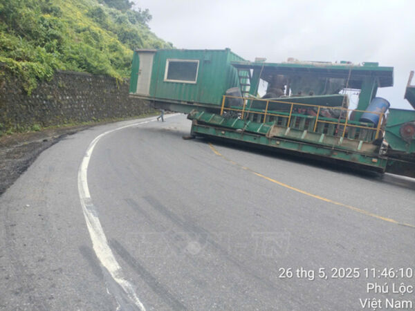 26/05/2025 14:53’ Khoảng 9 giờ ngày 26/5, tại Quốc lộ 1A, xe cỡ lớn kéo rơ moóc khi lên dốc đã gặp sự cố khiến phần đầu kéo và phần rơ moóc tách rời, mắc kẹt giữa đường