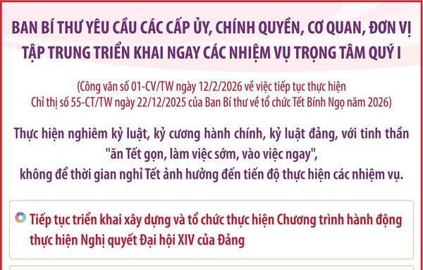 • Ban Bí thư yêu cầu các cấp ủy, chính quyền, cơ quan, đơn vị tập trung triển khai ngay các nhiệm vụ trọng tâm quý I