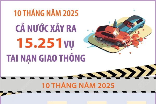 • 10 tháng năm 2025: Cả nước xảy ra 15.251 vụ tai nạn giao thông