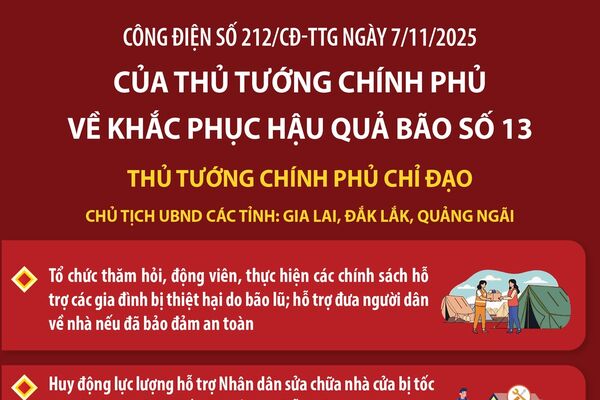 • Công điện số 212/CĐ-TTg ngày 7/11/2025 của Thủ tướng Chính phủ về khắc phục hậu quả bão số 13