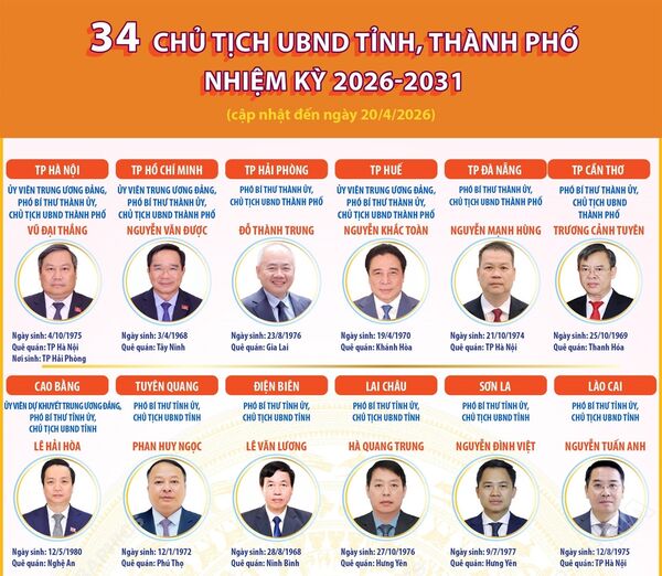 • Thông tin về 34 Chủ tịch UBND tỉnh, thành phố nhiệm kỳ 2026-2031