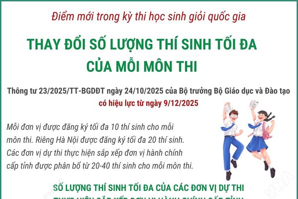 • Quy định mới về số lượng thí sinh tối đa của mỗi đội tuyển học sinh giỏi quốc gia