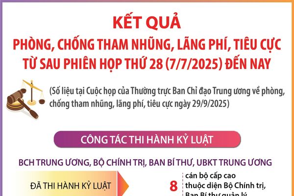 Kết quả phòng, chống tham nhũng, lãng phí, tiêu cực từ sau Phiên họp thứ 28 (7/7/2025) đến nay