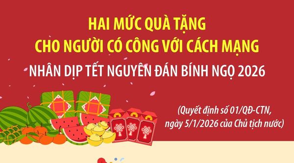 • Hai mức quà tặng cho người có công với cách mạng nhân dịp Tết Nguyên đán Bính Ngọ 2026