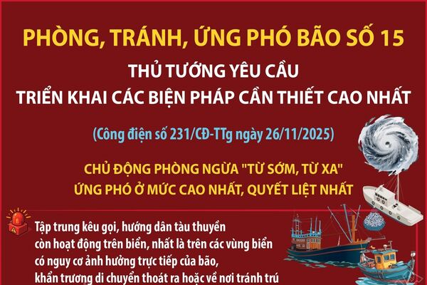 • Thủ tướng yêu cầu triển khai các biện pháp cần thiết cao nhất để phòng, tránh, ứng phó bão số 15