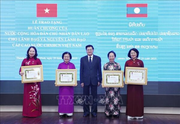 29/04/2025 18:34’ Tổng Bí thư, Chủ tịch nước Lào Thongloun Sisoulith đã trao tặng Huân chương Tự do hạng Nhất cho Phó Chủ tịch nước Võ Thị Ánh Xuân và các nguyên Phó Chủ tịch nước.