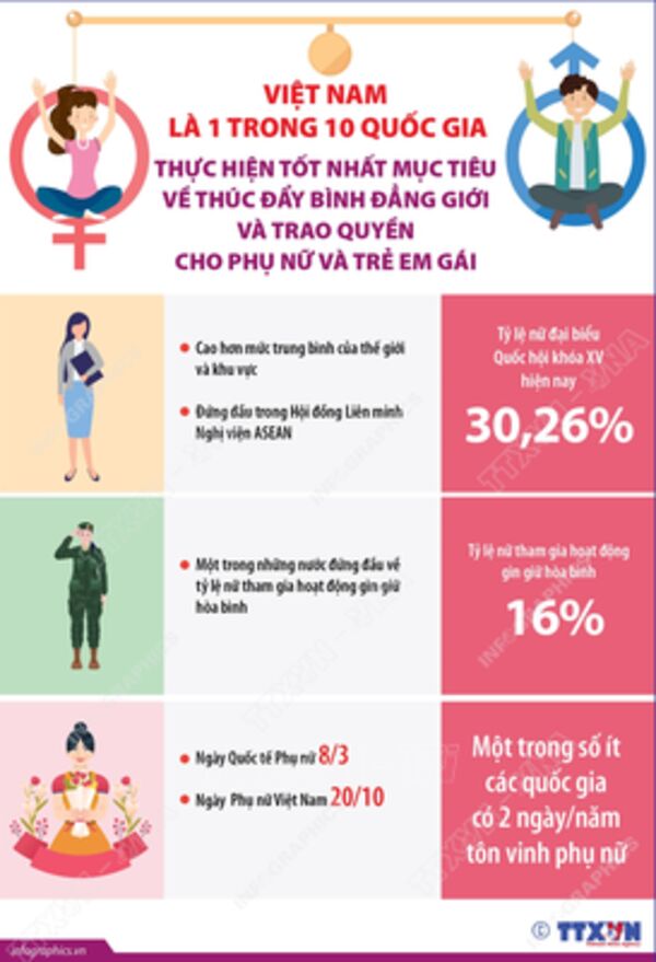 Việt Nam là 1 trong 10 quốc gia thực hiện tốt nhất mục tiêu về thúc đẩy bình đẳng giới và trao quyền cho phụ nữ và trẻ em gái