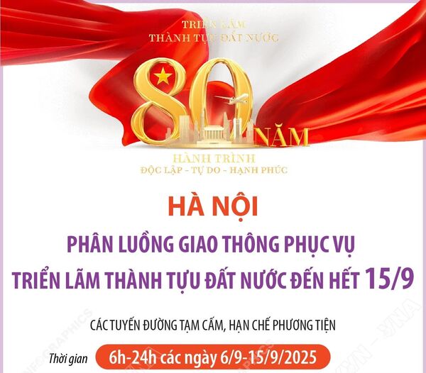 30/08/2025 21:07’ Triển lãm “80 năm hành trình Độc lập – Tự do – Hạnh phúc” mở cửa miễn phí từ 28/8 đến 5/9, tại Trung tâm Hội chợ Triển lãm Quốc gia (Đông Anh, Hà Nội) từ 9 giờ đến 22 giờ hằng ngày.