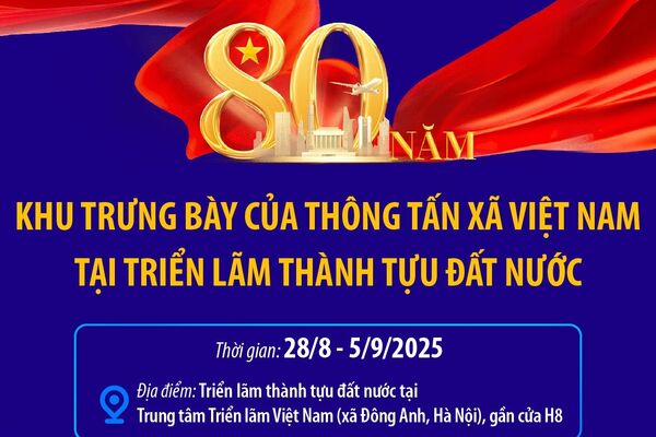 28/08/2025 07:55’ Khu trưng bày phản ánh rõ nét những cống hiến, đóng góp to lớn của TTXVN vào sự nghiệp cách mạng của Đảng và dân tộc; khẳng định vai trò, vị thế cơ quan thông tin chủ lực trong hệ thống báo chí truyền thông của đất nước...
