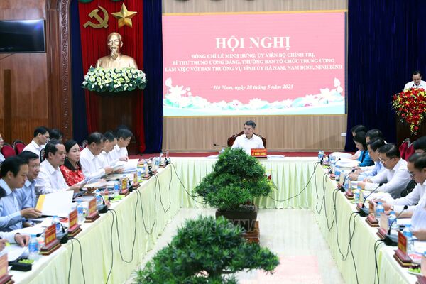 Trưởng Ban Tổ chức Trung ương Lê Minh Hưng làm việc với Ban Thường vụ Tỉnh ủy các tỉnh Hà Nam, Nam Định, Ninh Bình