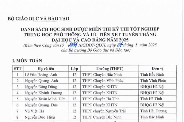 Thêm 11 thí sinh được miễn thi tốt nghiệp và ưu tiên xét tuyển thẳng vào đại học 2025