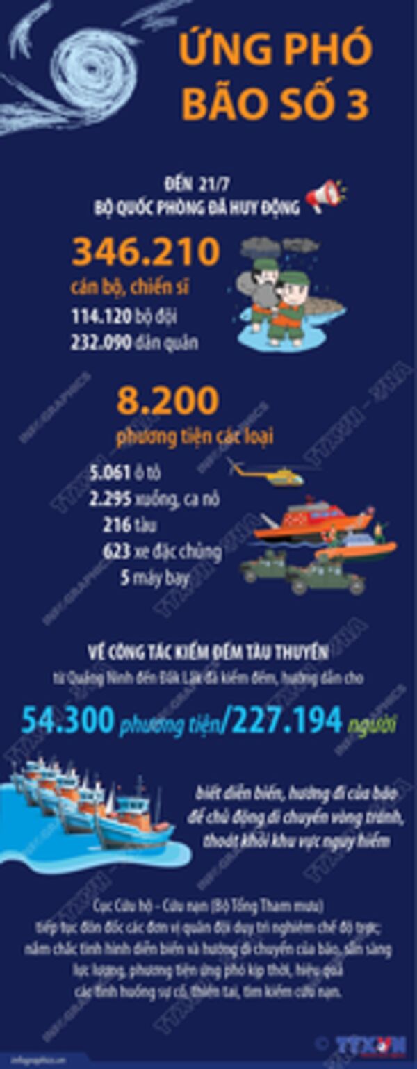 21/07/2025 16:10’ Lực lượng được duy trì trực 100% quân số, phương tiện sẵn sàng. Các trạm kiểm soát biên phòng xây dựng phương án cụ thể, phối hợp chặt chẽ với chính quyền địa phương để kêu gọi tàu thuyền vào nơi trú tránh an toàn, đồng thời tuyên truyền nhân dân chủ động gia cố nhà cửa, bảo vệ tài sản.