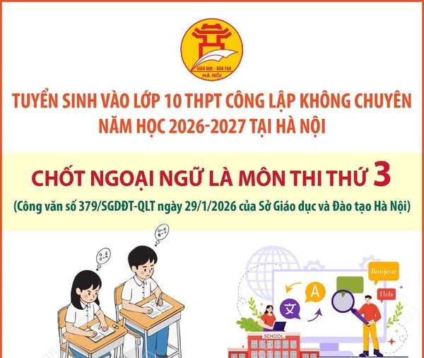 • Kỳ thi tuyển sinh vào lớp 10 THPT công lập không chuyên năm học 2026-2027: Hà Nội chốt Ngoại ngữ là môn thi thứ 3