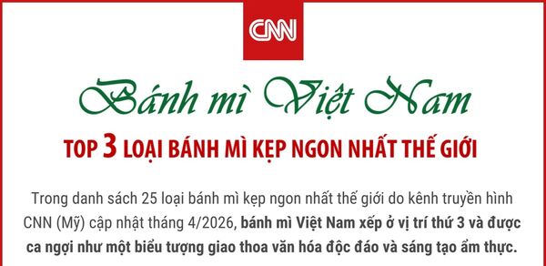 10/04/2026 15:40’ CNN mô tả "bánh mì Việt Nam giòn, tươi và cực kỳ ngon". Món bánh mì của Việt Nam đa dạng các loại nhân, thường là gồm pate, chả lụa, dưa chua, rau mùi, sốt.