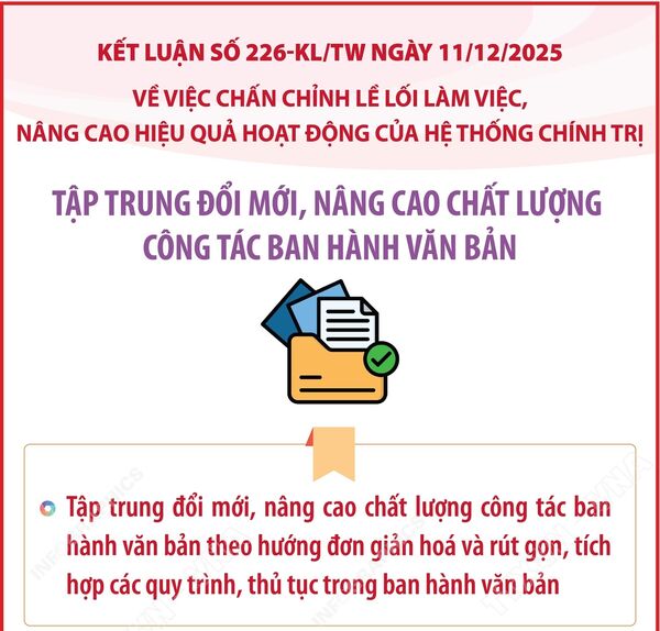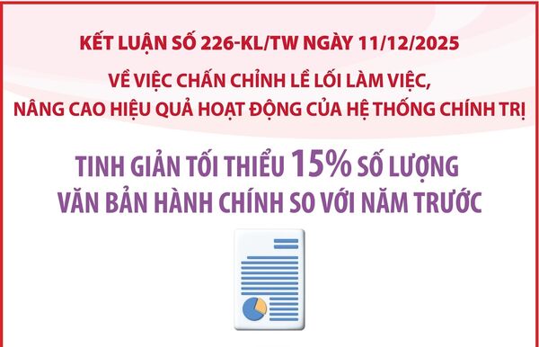 • Kết luận số 226-KL/TW: Tinh giản tối thiểu 15% số lượng văn bản hành chính so với năm trước