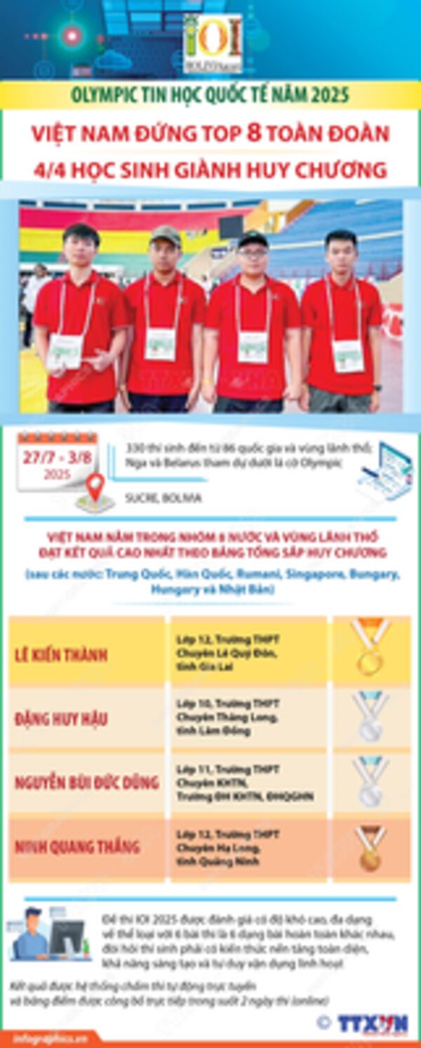 Olympic Tin học quốc tế năm 2025: 4/4 học sinh giành huy chương, Việt Nam đứng Top 8