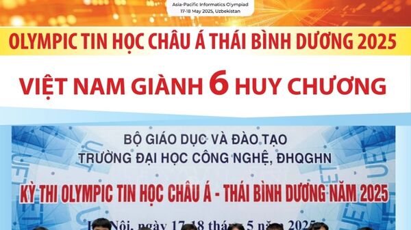 Đội tuyển quốc gia Việt Nam có 6/6 học sinh dự thi Olympic Tin học châu Á Thái Bình Dương (APIO) năm 2025 do Uzbekistan đăng cai tổ chức đều đoạt huy chương gồm: 1 Huy chương Vàng, 2 Huy chương Bạc, 3 Huy chương Đồng. -