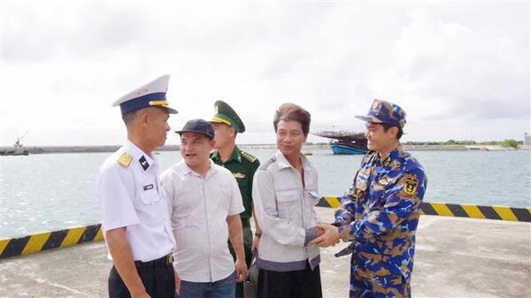 Bàn giao ngư dân sau khi điều trị chấn thương ổn định tại Trường Sa