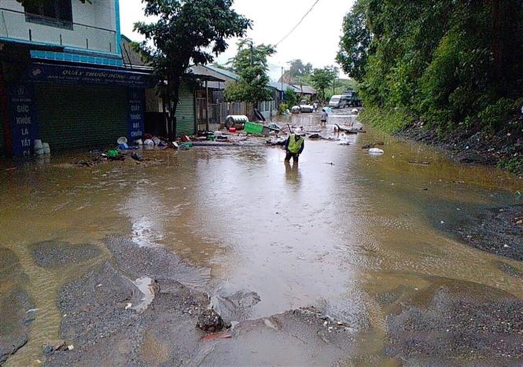 Tại tỉnh Điện Biên, sáng 7/8, nước lớn kéo theo bùn đất từ khu trung tâm hành chính mới đổ tràn vào nhà một hộ dân tại trung tâm xã Huổi Lèng, huyện Mường Chà, tỉnh Điện Biên. Chỉ trong khoảng 30 phút, mực nước cao điểm đã dâng qua đầu gối. Rất may, do gia đình đã chủ động từ trước nên không có thiệt hại về người. Hiện nay, người dân trong xã đang tiếp tục hỗ trợ gia đình khắc phục tạm thời. UBND xã đã báo cáo lên lãnh đạo huyện để xây dựng phương án hỗ trợ gia đình đắp, đổ nền và dựng lại nhà. Khu vực trung tâm xã Huổi Lèng (cách trụ sở UBND xã tầm 600 - 700m) xuất hiện vết nứt dài 40 - 50cm, chạy dọc theo Quốc lộ 12, gây nguy hiểm đến 2 hộ dân. Chính quyền địa phương đã vận động, đưa gia đình di chuyển khẩn cấp trong sáng 7/8 để đảm bảo an toàn tài sản và tính mạng.