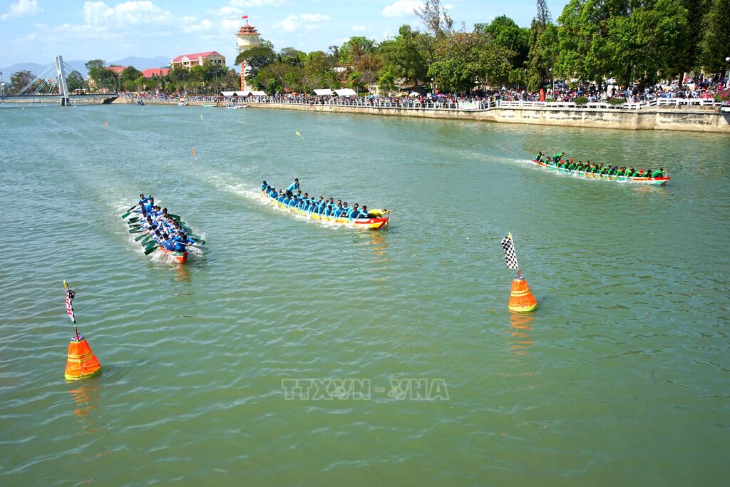 Dù diễn ra vào giờ trưa, nắng nóng nhưng dọc 2 bên bờ sông Cà Ty, đoạn từ cầu Trần Hưng Đạo đến cầu Lê Hồng Phong rất đông người dân và du khách đổ về xem đua thuyền. Dưới sự hò reo, cổ vũ của khán giả, lễ hội đua thuyền diễn ra trong không khí sôi nổi, tưng bừng, mang lại sự sôi động, rộn ràng trong những ngày đầu Xuân. Năm nay, lễ hội thu hút hơn 200 vận động viên đến từ 5 đội thuyền của các phường Bình Thuận, Phan Thiết, Phú Thuỷ, Mũi Né và Tiến Thành tham dự. Các đội tranh tài ở 3 nội dung thi đấu: đua thuyền cự ly 300m đồng hàng, 500m đồng hàng và 1.200m quay vòng. Ngoài ra, các vận động viên còn tranh tài ở nội dung bơi thúng đơn 500m.