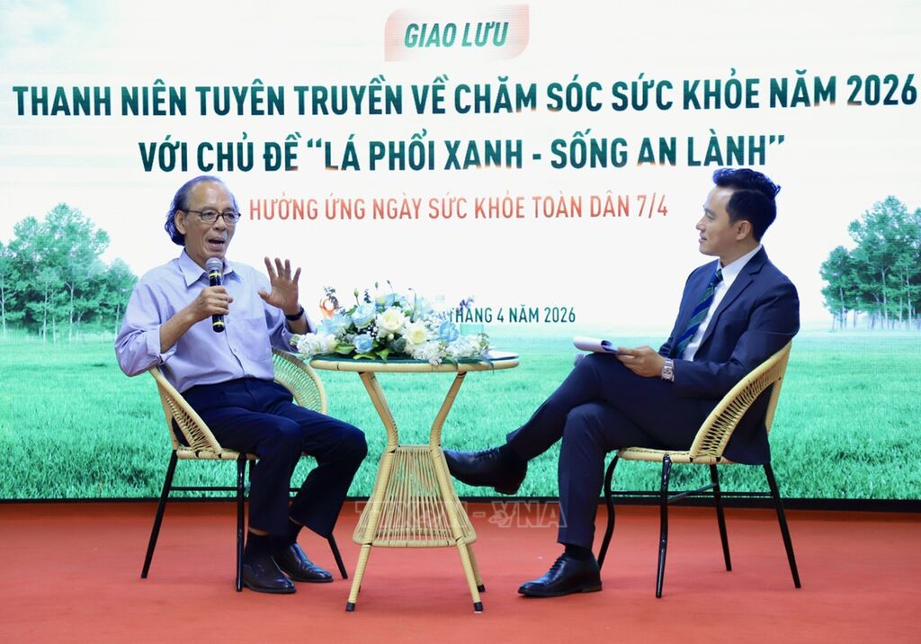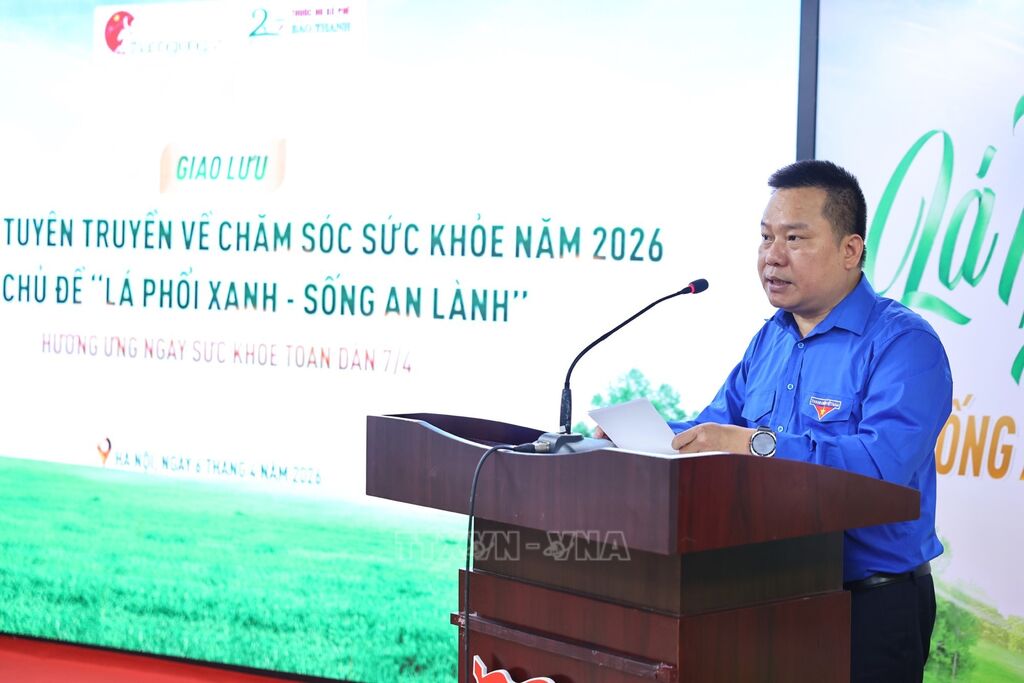Chiều 6/4, tại Hà Nội, Cổng tri thức Thánh Gióng (Trung ương Hội Liên hiệp Thanh niên Việt Nam) phối hợp với các đơn vị đồng hành tổ chức chương trình giao lưu “Thanh niên tuyên truyền về chăm sóc sức khỏe năm 2026” với chủ đề “Lá phổi xanh – Sống an lành”, hưởng ứng Ngày Sức khỏe toàn dân 7/4. Sự kiện thu hút đông đảo đoàn viên, thanh niên, cán bộ Hội và các chuyên gia y tế tham gia.